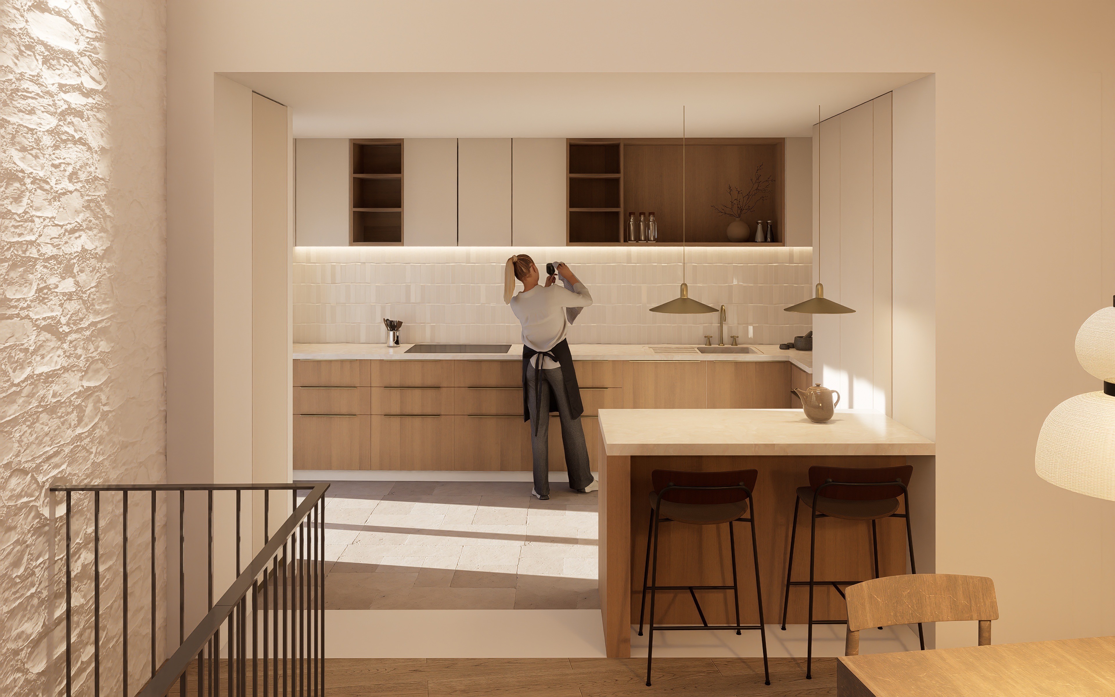 À Teyran, Au cœur du village historique, cette réhabilitation transforme une maison existante en une habitation contemporaine ancrée dans son contexte patrimonial. Implantée dans un tissu urbain dense, sur une parcelle contrainte, l’intervention révèle le potentiel spatial du bâti existant plutôt que de le contraindre. Le projet s’appuie sur une écriture architecturale résolument méditerranéenne : volumes simples, enduits clairs. Une approche sobre qui respecte l’identité du centre ancien tout en affirmant une modernité assumée. L’enjeu principal résidait dans l’optimisation d’un espace réduit. La maison est pensée comme un ensemble évolutif, capable de s’adapter aux usages et aux temporalités de ses habitants. Les circulations deviennent des séquences habitées, les espaces se prolongent visuellement pour élargir les perspectives