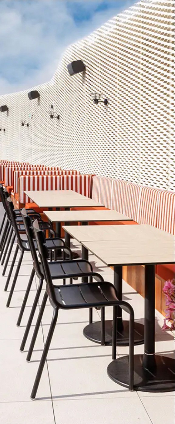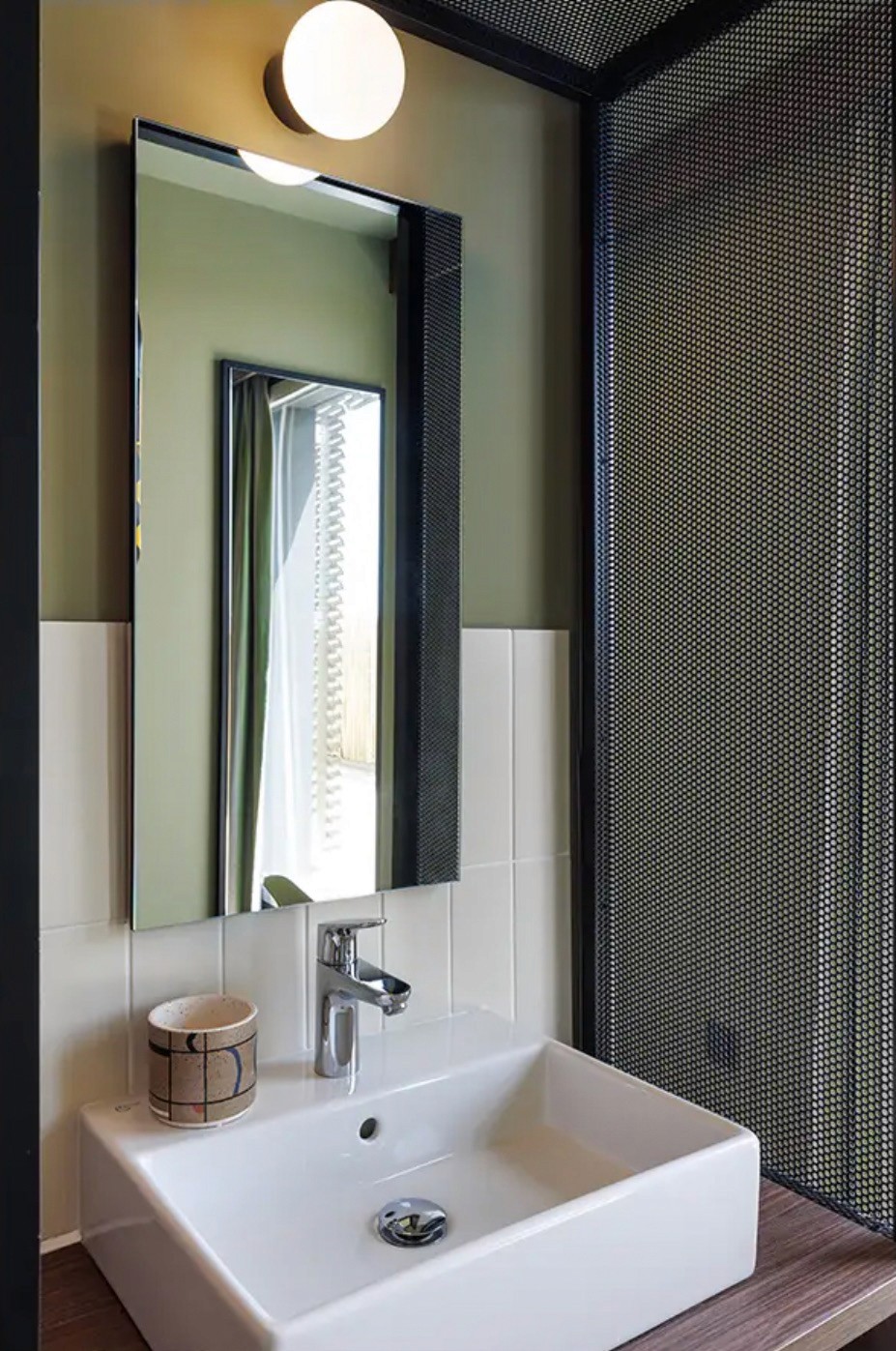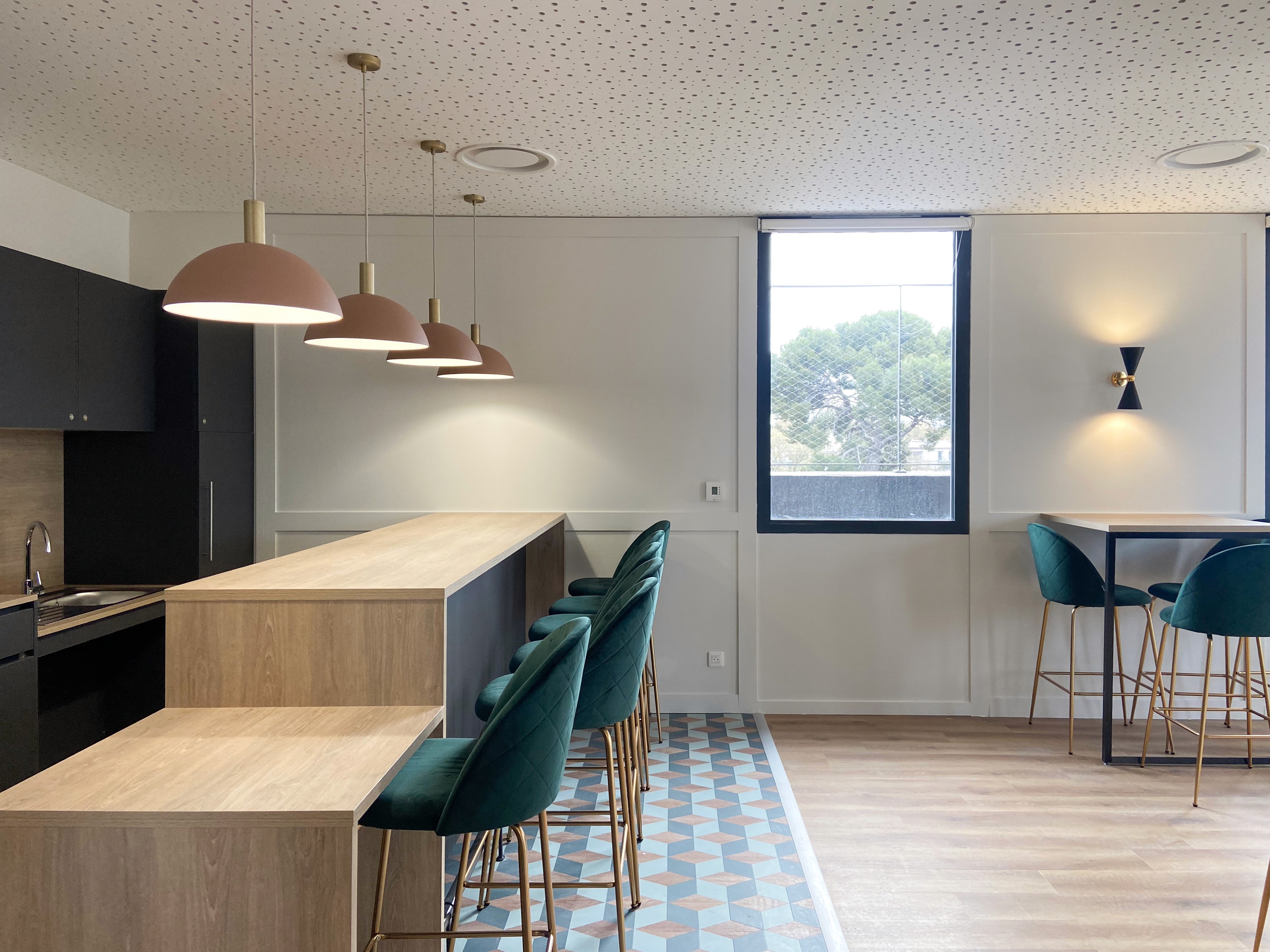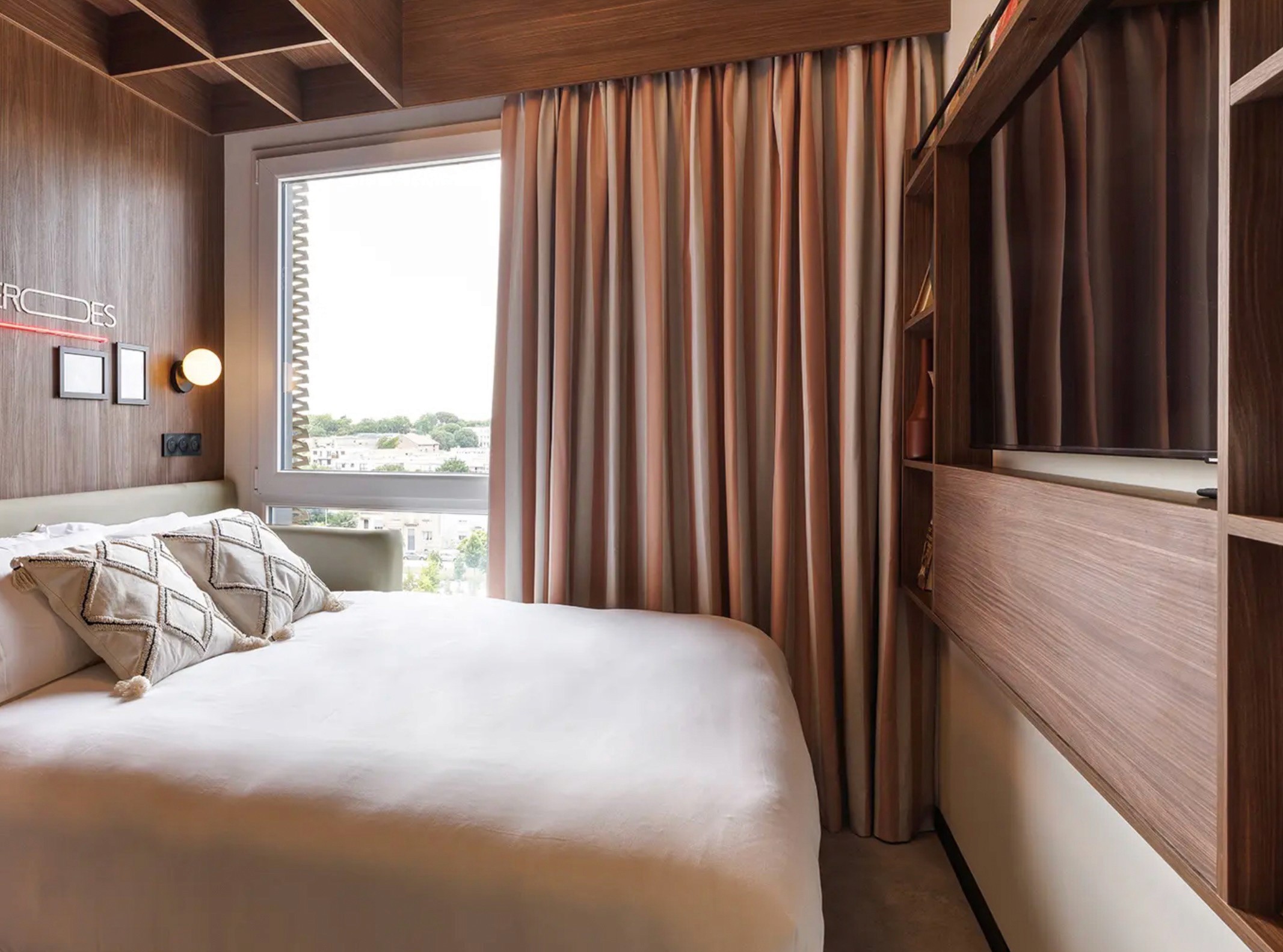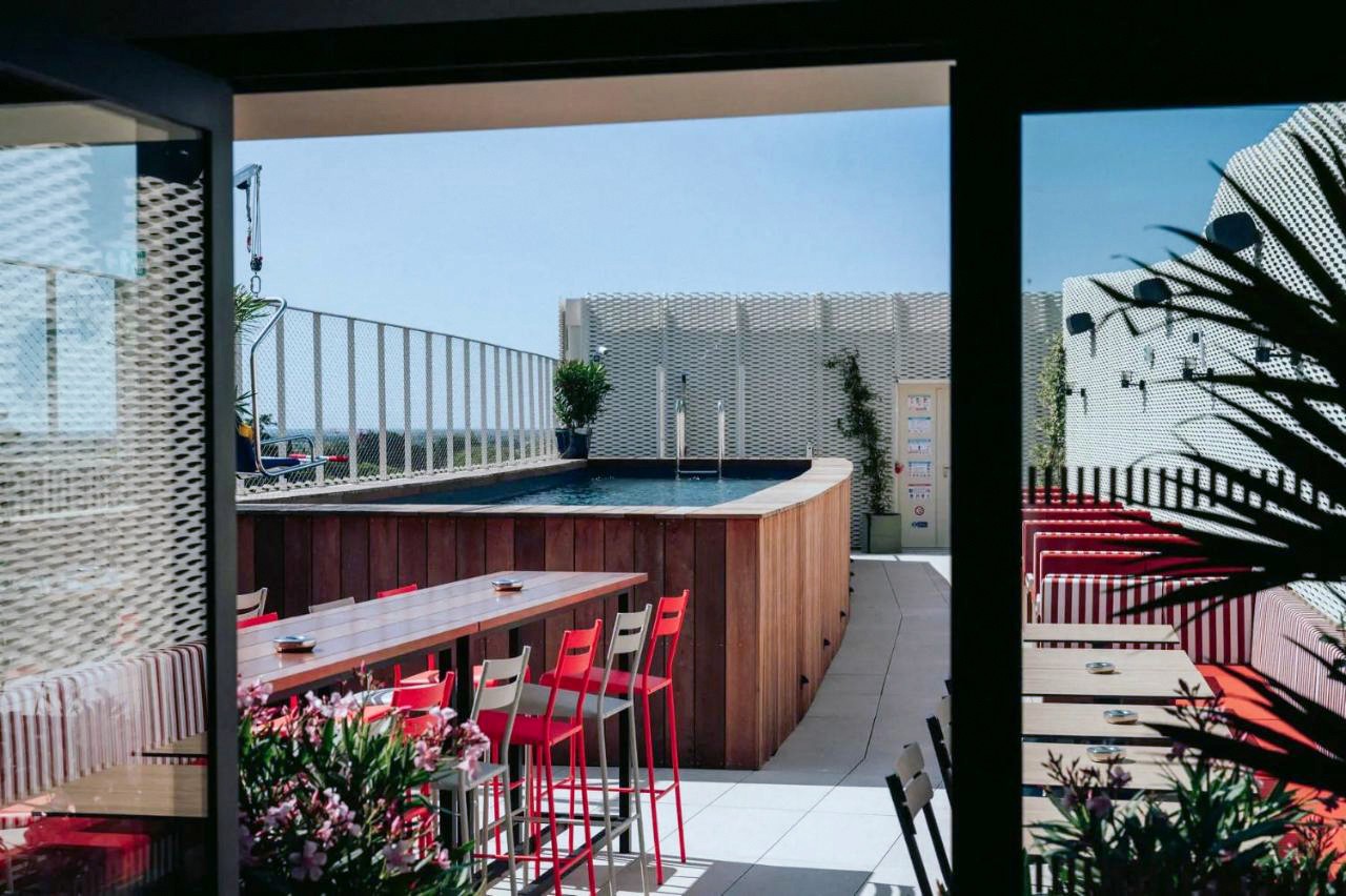 À Montpellier, À proximité de la gare Saint-Roch, le projet comprend 3 500 m² de bureaux, 3 500 m² d’hôtel, un rooftop de 300 m² avec piscine et bar, ainsi qu’un food court de 300 m² au rez-de-chaussée. En bordure des lignes de train, le bâtiment joue un rôle de barrière acoustique, protégeant le reste du quartier des nuisances sonores. Des solutions techniques avancées, notamment des systèmes sur ressorts, ont été mises en œuvre pour garantir un confort acoustique optimal. Inspiré par son environnement ferroviaire, le projet s’inscrit dans un contexte urbain marqué. Les trois premiers niveaux, en béton brut clair, se distinguent par un rythme rigoureux de menuiseries aux dimensions généreuses. En rupture avec cette base minérale, les quatre niveaux supérieurs sont revêtus de métal déployé beige nacré, jouant sur les effets de pleins et de vides. Enfin, le dernier niveau, entièrement blanc et au trait sculptural, vient affirmer la singularité du projet et en couronner la composition.